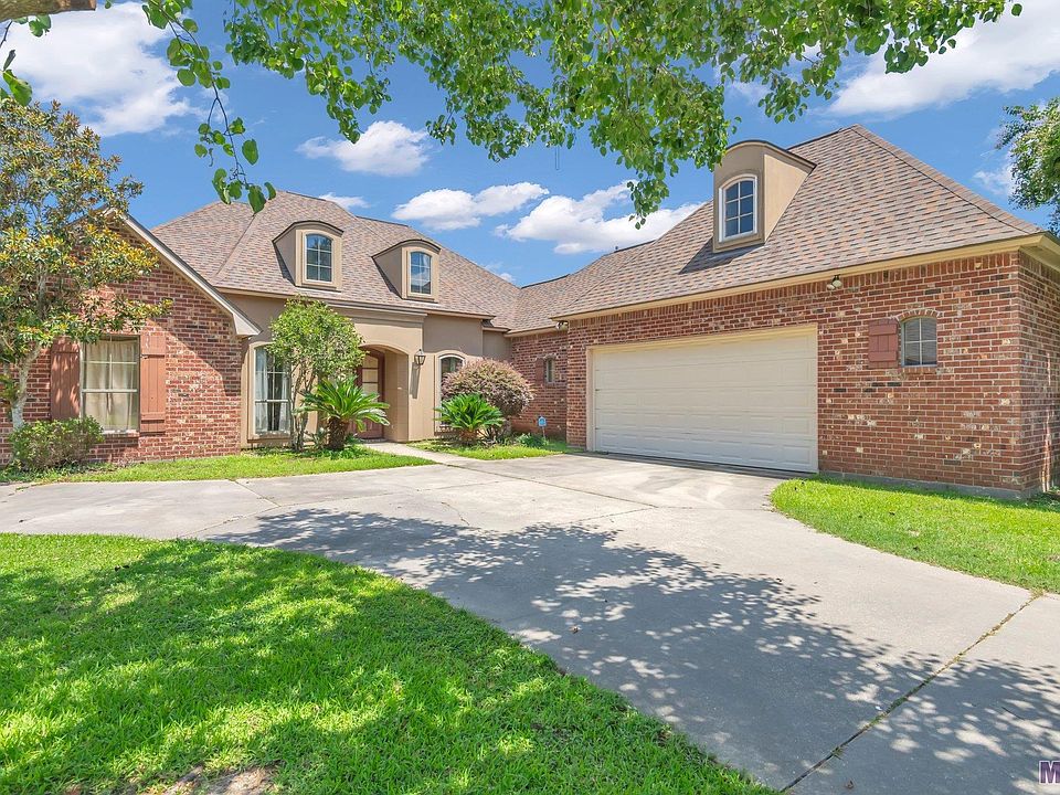 Introducing the enchanting Oak Alley Estates subdivision in Geismar! Nestled alongside a shimmering man-made lake, this exquisite French-style abode is a true gem waiting to be discovered. Step inside this 3569 sqft, split floor plan, 4-bedroom, 3-bathroom home built in 2007it, with ceilings ranging from 9 to 12 feet throughout. This home features a custom fireplace mantle, rich wood and tile floors, primary ensuite boasting a separate jetted tub and standing shower, a double vanity, toilet closet and walk-in closets. For the culinary enthusiast, the chef's kitchen is a dream come true, featuring granite countertops, a wall double oven, separate cooktop, stainless steel appliances, and a breakfast area. Elaborate crown molding and columns adds a touch of sophistication, while the double garage provides ample space for your vehicles and storage needs. Find solace in the thoughtfully designed computer nook and multiple entertainment areas, perfect for both work and play. Experience a lifestyle of luxury and convenience in this beautifully constructed home, where every detail has been lovingly curated to create a haven of beauty and refinement. Don't miss your chance to make this stunning property your own and live amidst the allure of Geismar's finest offerings.