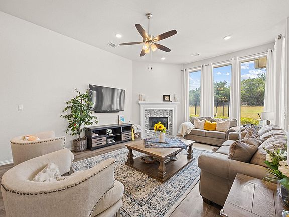 Just 25 minutes from the heart of downtown Austin, this 2,310 sq. ft. home offers the perfect blend of Hill Country tranquility and city convenience. Situated in the highly sought-after Belterra community of Dripping Springs, it features 4 bedrooms (one ideal as a home office or study) and 3 full bathrooms. Inside, you'll find bright, open living spaces and a kitchen designed for both everyday meals and entertaining. The backyard boasts a unique tiered layout with a retaining wall, upper yard, and concrete ramp for easy access, offering endless possibilities for play or relaxation. Belterra residents enjoy parks, trails, playgrounds, and a resort-style pool, all within walking distance to top-rated Rooster Springs Elementary in Dripping Springs ISD. Shopping, dining, and entertainment are also just minutes away, giving you the perfect balance of convenience and community.