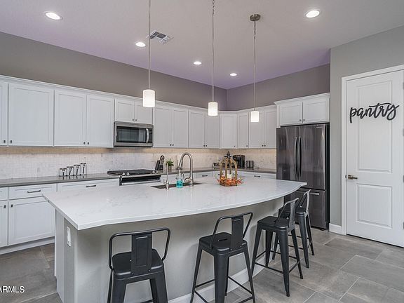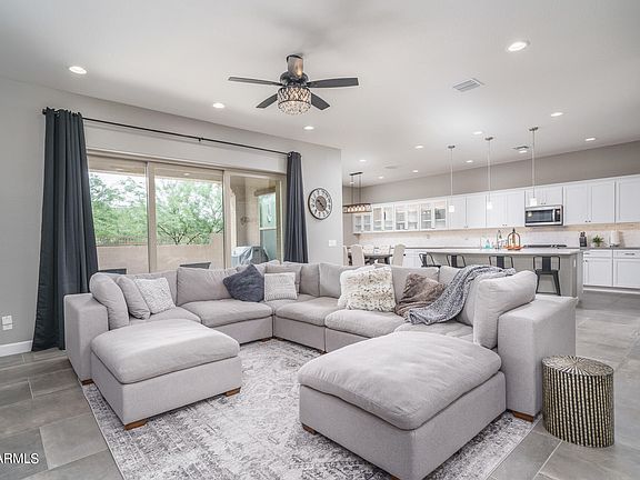Come enjoy all Arizona has to offer with this luxury home located behind the Gates of Rosewood Golf Villas Community! Nestled on a cul de sac lot with w/beautiful curb appeal and dramatic entryway with striking ceilings and a modern light fixture, this home exudes elegances. This 3-bedroom 2.5-bathroom home has a great room floorplan showcasing a stunning kitchen with extended cabinets into the dining room, an extended-length pocket slider, and a stylish ceiling fan in the great room. The beautiful gourmet chef's kitchen has a large kitchen island with a breakfast bar, white cabinets, white tile backsplash a gas cooktop, and stainless-steel appliances. The primary suite is huge with a luxurious luxurious ensuite bathroom with a corner shower, separate soaking bathtub, dual sink vanity, and a walk-in closet. Bedrooms 2 and 3 are spotless and neutral color tones complete with ceiling fans. The backyard is immaculate and easy to care for with a paved seating area and artificial turf. Enjoy the view under the extended-length covered patio with no immediate neighbors behind! Do not miss your chance to lease this gorgeous home.