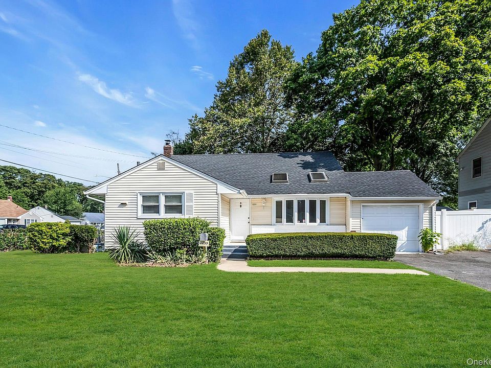 Welcome to 1233 August Road, North Babylon. This front-to-back split home sits on a large corner lot and features a vaulted ceiling living room with plenty of natural light. The updated eat-in kitchen and bathrooms offer modern convenience. Upstairs, you'll find 3 bedrooms and a full bathroom. The lower level includes a den, fourth bedroom, full bathroom, utility room, and laundry room. Step out through the rear door to a fenced backyard—perfect for outdoor relaxation. Hardwood floors throughout, with a one-car attached garage and a newer above-ground oil tank. The home is heated by oil and has gas available for cooking. Conveniently located near shops, dining, and major highways.