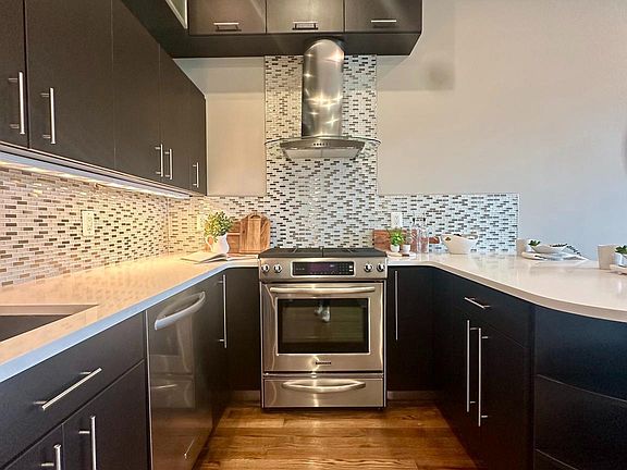 Quartz countertopsKeyless entrySleek kitchenIn-unit laundryNest smart thermostatLarge windowsHardwood floors