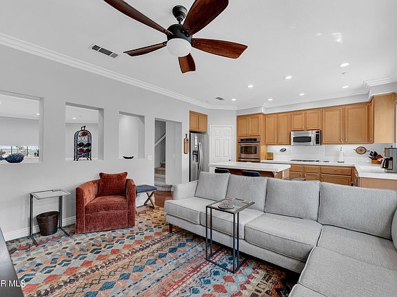Welcome to this beautiful, gated tri-level townhome nestled in the desirable Westport at Mandalay Bay community. This move-in ready home is full of upgrades and waiting for you! Revel in the airy atmosphere with high ceilings and a cozy fireplace in the living room, accompanied by a separate dining area perfect for entertaining. The spacious kitchen, which opens to the family room, boasts stainless steel appliances, a center island, and a convenient walk-in pantry. On the upper level you will find the primary bedroom with an en-suite bathroom including a separate tub and shower, dual sinks, and large walk-in closet, along with two spacious guest bedrooms and bathroom. Step outside to find two balconies, one off the kitchen and one off the primary bedroom, and a mid-sized patio offering serene mountain views. Other amenities include an indoor laundry room, two-car direct access garage, and a fantastic community that features a heated pool, spa, and easy access to the picturesque Westport Marina just beyond the gates. Enjoy the waterfront trails that connect you to the vibrant dining and shopping scene of Westport and Seabridge Experience the epitome of this beach and harbor community!