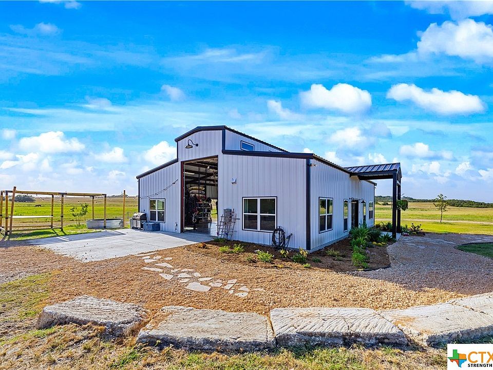 While you are waiting on your home to be built, a fully functioning 2 bed, 1 bath barndominium provides a cozy place to live. The barndominium slab totals 2,206 sqft, with 763 sqft of living space. The living area provides 2 beds, 1 bath, with a full kitchen, and washer/dryer hookup. The remaining area is utilized as a fully operational workshop, including an office.