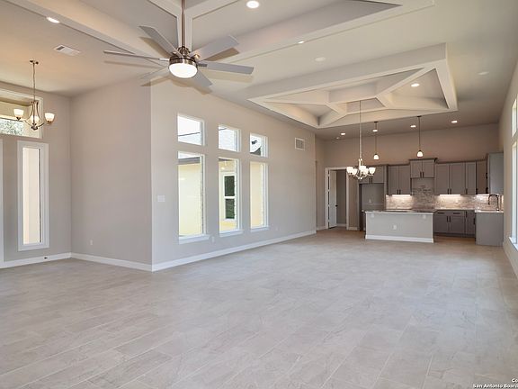 - One Living Area, Liv/Din Combo, Eat-in Kitchen, Two Eating Areas, Kitchen Island, Breakfast Bar, Pantry, Utility Room Inside, 1st Floor Lvl/No Steps, High Ceilings, Open Floorplan, All Bedrooms Downstairs, Walk-In Closet(s), Master Downstairs, Ceiling Fan(s), Chandelier, Solid Counter Tops