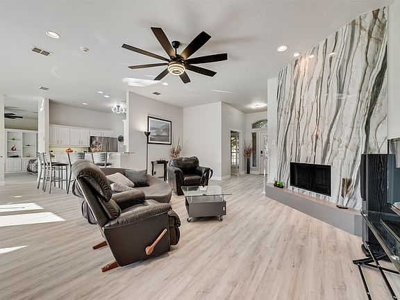 Experience modern living at its best in this beautifully updated home, perfectly situated in the highly desirable Willow Park neighborhood. Thoughtfully refreshed from top to bottom, this stunning residence showcases new flooring, fresh designer paint, stylish countertops, and contemporary bathroom upgrades. A striking porcelain slab tile fireplace anchors the living area with sophistication, while decorative lighting throughout creates a warm, inviting ambiance.