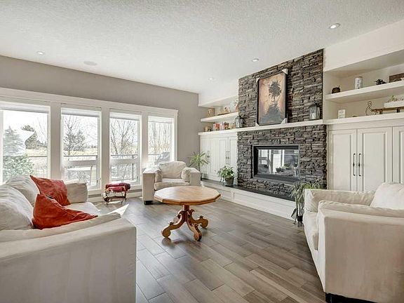 This fully finished two-story home, built by renowned builder, Gigantelli Fine Homes, blends quality craftsmanship with thoughtful design throughout. Known for attention to detail and commitment to lasting value, Gigantelli delivers a home that's both functional and beautifully finished, perfect for families who want it all. With 5 bedrooms and 4 bathrooms, there's plenty of space for everyone. Upstairs, boasts 3 generous bedrooms, a spacious bonus room, and a stylish 4-piece bathroom. The Primary suite offers a true retreat featuring a spa-inspired ensuite with a two person jetted tub, double vanity, walk-in closet with a convenient access to the upper floor laundry. For added comfort, the upper floor windows are outfitted with both day and night shades, providing privacy and room darkening effects when desired. The main floor is open and welcoming, featuring a coffered ceiling in the dining area, a stone-faced gas fireplace in the living room and access to a balcony overlooking the 13th hole of Strathmore's own Golf Course. The chef inspired kitchen is equipped with stainless steel appliances, a gas stove with commercial-grade range hood and a well designed walk-through butler's pantry perfect for both everyday living and entertaining. The main floor office is conveniently located just off the front foyer and is perfect for working from home or the ability to create a crafters dream space. The oversized double garage has in-floor heating and opens into a freshly painted and spacious mudroom that keeps things well organized with designer shelving. The fully developed walkout basement features in-floor heating , a stylish wet bar complete with a dishwasher and wine fridge, a large three piece bathroom , and a convenient second laundry area. Two additional spacious bedrooms and a bright recreation/games room, with new professionally installed flooring, make this level both functional and inviting. . Step outside to the covered patio, an ideal spot to relax or entertain rain or shine. The yard is beautifully landscaped and complete with air conditioning for year round comfort. Move-in ready, this property offers an exceptional blend of style, comfort and high end finishes. Call your favorite Realtor today and book a personal tour. Your next home is waiting for you, right here !