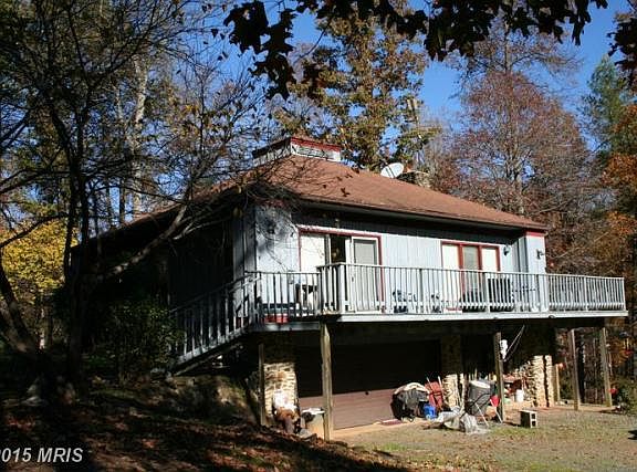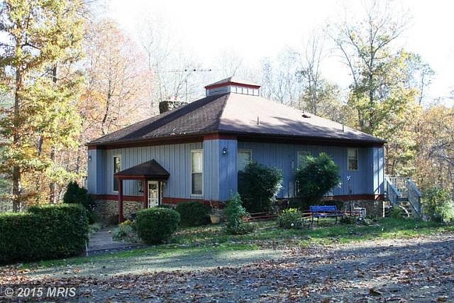 Located in beautiful southern Madison county, property contains 72 acres of both woods and rolling pastures/fields. Grounds around the home are landscaped with peaceful stream flowing through the back yard. Garden site, 3 outbuildings with electricity, and several walking trails; cathedral ceilings. Home is complete with custom riverstone exterior and woodburning fireplace.