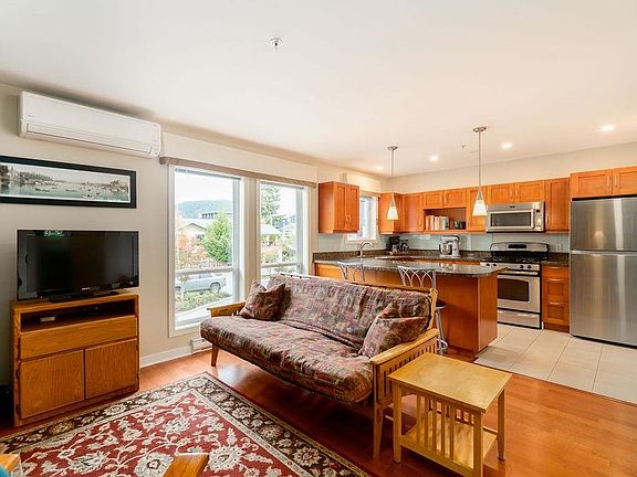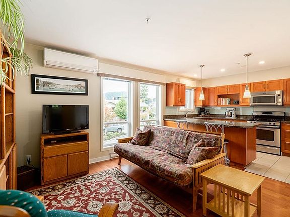 Welcome to Skye townhomes tucked away by the estuary in beautiful Downtown Squamish. This spacious 3-bed, 2.5-bath former show home offers one of the best layouts in the complex with nearly 1,900sq.ft of living space. Some of the features include hardwood floors, granite counters, S/S appliances, a gas fireplace and $25k heat pump upgrade keeping utility bills low. Enjoy open-concept living with a private patio and stunning views of The Chief and Atwell Peak. Upstairs offers 3 generous bedrooms, including a large primary with double closets and spa-like ensuite. Flex space ideal for home office or gym. Double tandem garage plus outdoor parking spot. Steps to estuary trails, shops, and cafés. First open house, Saturday October 11th, 11am-1pm.