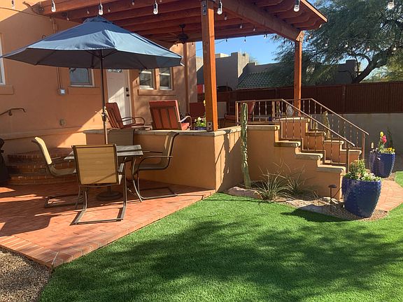 It's all about outdoor living in Tucson. The professionally landscaped walled backyard offers a private getaway with a weber BBQ and dinner table.