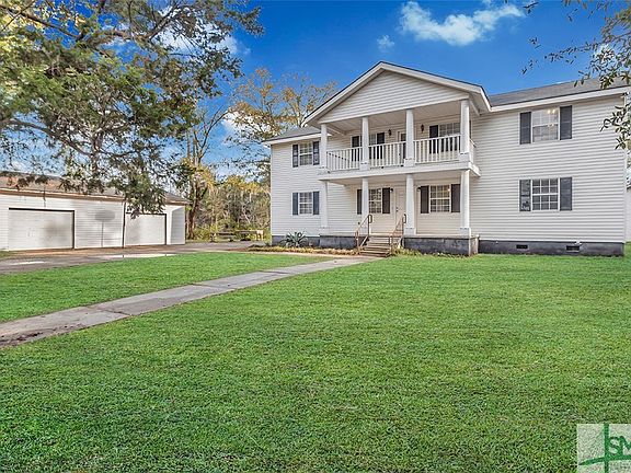 Nestled on .53 acres in the heart of Eden, 1233 HWY 80 offers character & charm with potential for commercial rezoning. You’ll love the covered front porch, primary suite with a balcony & the private pond. The living room features a double-sided fireplace, crown molding & a flex space, perfect for an office. The kitchen features matching appliances, ample cabinet space, breakfast bar & dining area. The owners suite which can be accessed from the front or back staircase offers a private balcony, walk-in closet & an ensuite with a single vanity & jacuzzi tub. Tastefully updated, this home has fresh paint & new flooring throughout. Two oversized detached garages give you plenty of storage space for all of your toys. Relax in the backyard or fish in the private pond. Just a short drive to I-16/I-95, Pooler, Savannah/HHI Airport, Hyundai Mega Site, restaurants & entertainment.