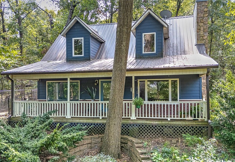 Discover the perfect mix of modern updates and country charm on this private 10-acre wooded retreat. The home features a remodeled kitchen and bathrooms, freshly painted living areas, and an open-concept design with large windows that fill the space with natural light. A cozy wood stove and loft with built-in shelving add warmth and character. Step outside to 2 pole barns, storage buildings, and a versatile stand-alone multi-purpose room with electricity and a wall HVAC unit—ideal for a studio, office, or guest quarters. Designed for mini-farm living, the property includes a chicken yard, horse stable, beautiful native plantings, and a charming playhouse. Beautiful natural rock outcroppings complete this one-of-a-kind setting, offering endless possibilities for recreation, homesteading, or simply enjoying the peace and beauty of nature.