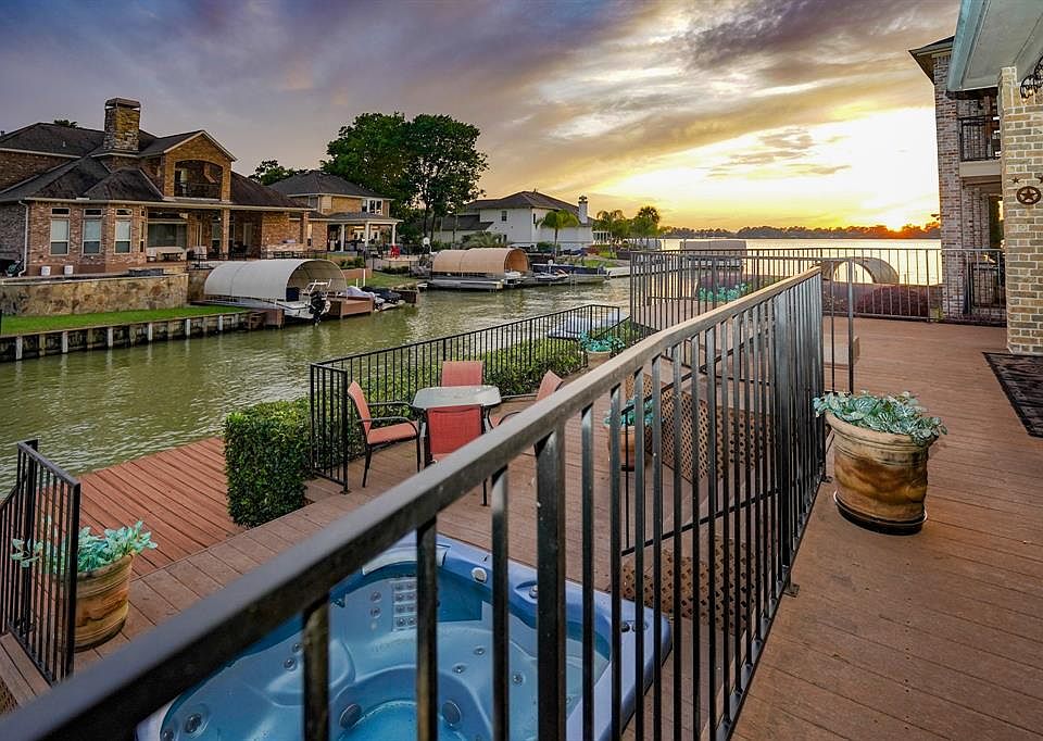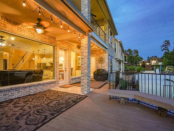 Incredible two story home overlooking Lake Conroe that has an abundance of windows/natural light. Features include island in kitchen with sink, granite counters, Thermador gas cook top with griddle, convection oven, gas log fireplace, custom built ins, large walk in shower in the master bath, two sinks with vanity area, upstairs game room and media room, wet bar, private second floor balcony, walk in closets in all bedrooms, large tiered deck with hot tub off of the kitchen/den area, covered boat slip, water softener system and the list goes on.