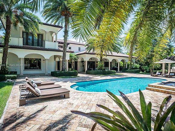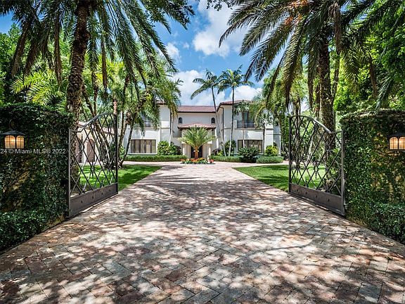 A prized property in the ultra desirable Pinecrest neighborhood. Situated on an acre+ lot, this grand Mediterranean estate boasts character and lush, mature landscaping creating true privacy within its gated setting. A 7 Beds, 7.5 Baths, Crestron-powered smart home w an elegant double height entry rotunda connecting the formal living, formal dining and an axis view to the pool beyond. The home has custom millwork throughout, a spacious gourmet kitchen, large pool w spa and 2 covered terraces w built-in bar, a large office, 3 car garage w an additional covered driveway w access to the kitchen. Exquisite primary suite with adjacent sitting area and terrace overlooking the pool. This attractive home is a dream backdrop for entertaining + enjoying peaceful evenings in the tropical backyard.