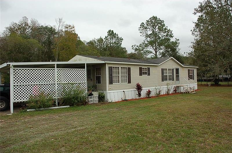NO HOA, CDD, OR DEED RESTRICTIONS. Country living only minutes from excellent shopping, the Veterans and the rest of Tampa. This well cared for 3/2 manufactured home is located on 1.23 acres and backs up to conservation. The property has a new A/C five ton unit and a new well pump. In addition to combination entry/office and formal dining room there is a very large family room overlooking a screened porch and an outdoor bar-b-que and deck. The master bedroom features a very large closet and a spacious light and bright bathroom with skylight. The workshop has water and electric. One minute from the Upper Cotee River Preserve which is an excellent Public Park operated by Pasco County. Property is fenced. Three car carport plus covered parking with workshop.