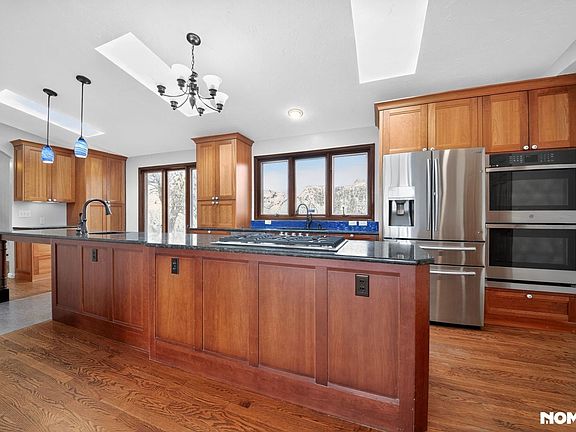 The home has a perfect layout with 3,188 square feet of living space. First is a huge gourmet kitchen equipped with a double oven, gas cooktop, retracting exhaust vent, two sinks with disposals, appliance garage, modern fridge and dishwasher, and built-in microwave.