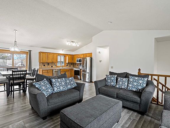 Welcome to 12331 Zea St. NW. This wonderfully updated split-level home in Coon Rapids is awaiting its next, new homeowners! Boasting five bedrooms with a three-car garage, a rarity for the area. Upstairs you will find an open concept with kitchen, dining room, and living room perfect for entertaining, three bedrooms, a full-size bath that walks through to the primary bedroom, and a large deck overlooking the fully fenced-in yard. Downstairs there are two more spacious bedrooms, a three-quarter bath with a walk-in shower, and great rec room with a gas fireplace that accesses the patio under the deck! Recent updates include conversion to an open concept on the upper level, new flooring, stainless steel appliances, updated bathroom, water heater, an irrigation system, and many smart features throughout. Nice-sized closets create plenty of storage space, with even more in the garage. The yard includes a few apple trees and a berry bush. Shoot some hoops or utilize all the parking space on the oversized driveway. Enjoy nearby shops and restaurants that Riverdale Shopping Center and Main Street Anoka offer; or take a short drive to the Coon Rapids Dam. There is plenty to love about this home and location! Be sure to see it today!