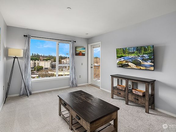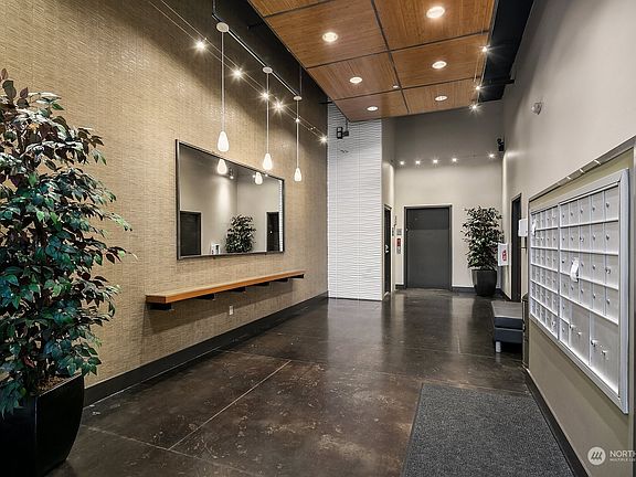Comfort meets convenience in this bright North Seattle condo! Set high on the 5th floor, it enjoys wide views & plenty of sunny western exposure. Relax in the light-filled living area, or whip up meals with ease in the open kitchen featuring stainless-steel appliances, tile backsplash, & designer concrete breakfast bar. Your private balcony is the perfect spot to watch the sun set before retreating to your comfy bedroom with its XL closet & built-in organizers. Don't miss the laundry room with storage space & stacked washer/dryer. Your secure storage closet, stylish lobby, & 2 garage parking spaces are just an elevator ride away. Stroll to Lake City's restaurants, parks, & shops from this convenient locale. Great I-5 & transit access, too!