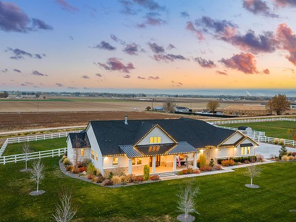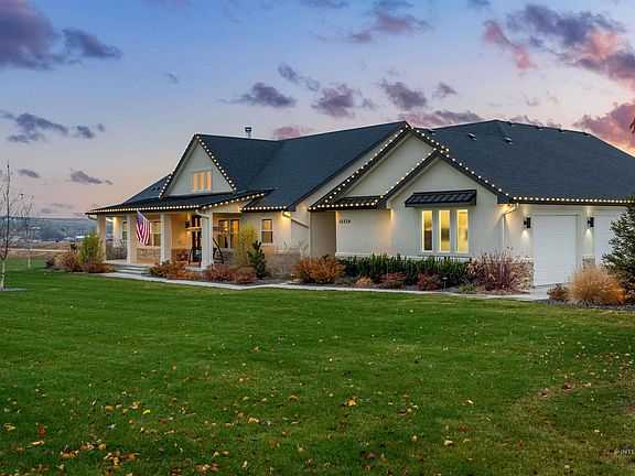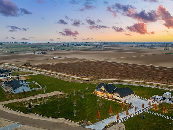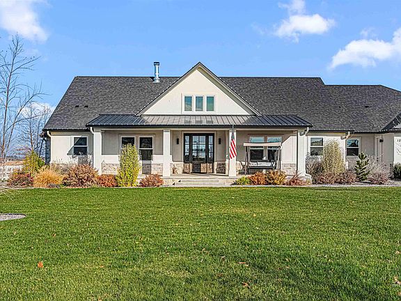 Experience luxury country living in this near-new rambler on 2.18 acres with no backyard neighbors. Set on a quiet dead-end street, this home was built with exceptional attention to detail, featuring 2x6 fully insulated walls inside and out for superior comfort and efficiency. The chef’s kitchen is outfitted with Thermador brand and Sub-Zero brand appliances, tall ceilings, 8-foot knotty alder doors, and expansive windows create a bright, open feel. Enjoy thoughtful upgrades throughout, including surround sound, tank-less water heater, dog shower, security system, and abundant natural light. A home office and bonus room offer flexibility for work and play, while the extra-deep garage easily fits three full-size trucks plus a car. With livestock allowed, this property offers space, freedom, and quiet living rarely found this close to town.