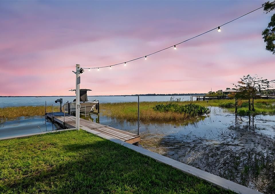 Lakefront Gem | Fully Renovated | Move-In Ready!! Wake up to sparkling water views, sip coffee on your private dock, and end your day watching unforgettable sunsets over Lake Eustis. This completely updated 3-bedroom, 3-bathroom home offers the ultimate lakefront lifestyle for anyone dreaming of a second home, vacation retreat, or downsizing into a turn-key waterfront escape. Located directly on Lake Eustis, part of the renowned Harris Chain of Lakes, you can fish, ski, or cruise to dinner by boat in minutes. After a day on the water, relax on your screened lanai, gather on the patio, or enjoy the breeze from your fenced backyard with a floating dock and boat lift. Modern updates and double-pane windows ensure that while the home is convenient to everything, the interior remains a private, quiet retreat. Inside, every detail has been designed for ease and elegance. The chef’s kitchen features quartz countertops, custom cabinetry, a deep stainless sink, oversized island with abundant storage, and WiFi-enabled appliances that make entertaining effortless. The open living room with a natural stone and quartz fireplace is perfect for game day, intimate dinners, or simply kicking back with a glass in hand. The primary suite feels like a private retreat, complete with a spa-inspired ensuite bath. A second bedroom also offers its own ensuite, ideal for hosting guests. With new LVP flooring, quartz window sills, and double-pane windows throughout, modern comfort meets timeless style. Peace of mind comes with knowing this home is truly move-in ready. A newer roof, A/C, and water heater (all replaced within the last 4 years), plus a new waterproof shed and no HOA, make ownership stress-free. Conveniently located near shopping, dining, entertainment, and medical facilities, you’ll enjoy both the tranquility of lake living and the comfort of being close to everything you need. Whether you’re a snowbird seeking sunshine, an empty nester ready to enjoy your next chapter, or a boat lover wanting a front-row seat to the Chain of Lakes, this property is a rare find. Every sunrise and sunset can be yours. Don’t miss the chance to make Lake Eustis your backyard.