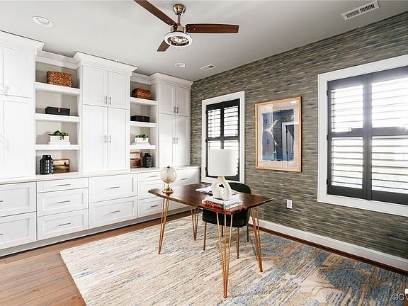 This luxury townhome boasts 2 spacious primary bedrooms, 2 additional bedrooms, and 4 and 1/2 baths in the sought-after Greengate Community. With upgrades and enhancements galore, this home has striking accents. Custom-built in 2019 by Eagle Construction, there is an inviting open floor plan with a chef's kitchen complimented by Kitchen Aid appliances and a butler's pantry. The living room is accented by a 42-inch gas fireplace with a hand-hewn floating mantle. The media room on the top floor is adjacent to a covered roof-top terrace with a NanaWall and a stone fireplace. The interior is highlighted by 10-foot ceilings, thermal windows, French doors, upgraded Wellborn Wright custom hardwood floors, and granite countertops. All bedrooms have walk-in closets and high-end finishes. The exterior is soundly constructed of brick, frame, and HardiPlank siding and there is a deck, balcony, and irrigation system. The formal dining room has a tray ceiling.The owners have cherished the home adding many upgrading features including replacing carpeted areas with wood floors, installing built-in custom cabinetry in the office, adding plantation shutters, adding a retractable awning, placing ceiling fans in the bedrooms, and adding Closet Factory shelving in the walk-in closets along with a retractable screen for the balcony, and recessed LED lighting.The property also includes an attached two-car garage. Greengate offers many amenities including a stylish clubhouse, a lounging pool, and trails. This townhome is on of the largest in the Community.
