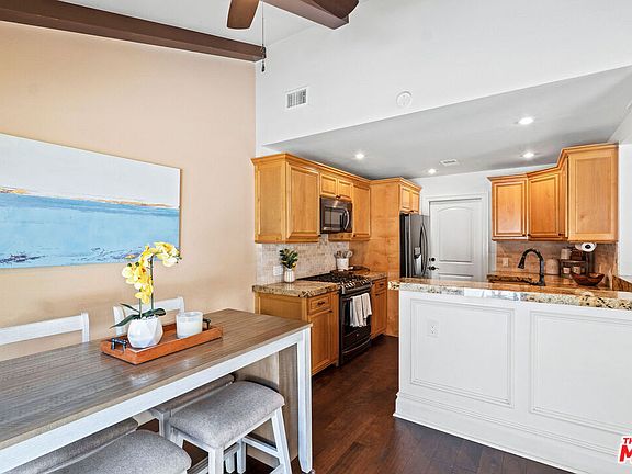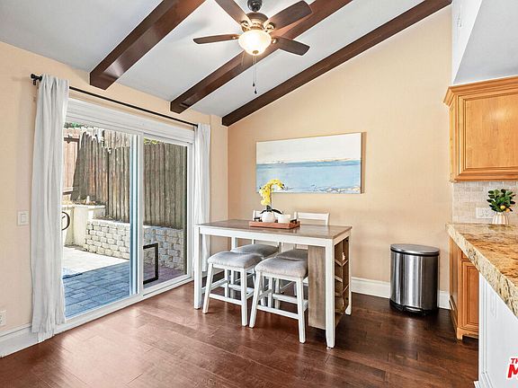 Welcome home to this beautiful 3-bedroom, 3-bath residence offering 1,901 sq. ft. of thoughtfully designed living space! Step through the covered entry and into an open-concept layout that seamlessly connects the living room, dining area, and kitchen. Natural light highlights the decorative fireplace, crown molding, wood-like floors, and charming wood beam ceilings.The kitchen features granite countertops, custom cabinetry, and stainless steel appliances. A stylish half bath and large hallway closet complete the downstairs.Upstairs, the spacious primary suite includes generous closet space and a full en-suite bath. Two additional bedrooms offer flexibility, including one with a built-in desk ideal for a home office. Another full bath completes the upper level.Enjoy your private yard, perfect for morning coffee or evening relaxation. The attached 2-car garage includes a laundry area for added convenience.Located in a 24-hour gated community with a pool and spa, and just minutes from the 210 and 5 freeways. This home has it all!