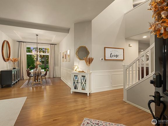 Located on the 14th green and fairway of Harbour Pointe Golf Course, this 2,337 sq ft One Clubhouse Lane home offers 4 bedrooms including a spacious bonus/flex room. Recent updates include exterior paint, resurfaced hardwood floors, and refreshed kitchen and bathrooms. Main floor features a formal living room plus a cozy great room with fireplace. Kitchen highlights quartz counters, stainless steel appliances, pantry, and eating nook. The primary suite boasts a 5-piece bath and walk-in closet. With central A/C, a 3-car garage, and peaceful golf course views, all near beaches, parks, shopping, and freeways in the top-rated Mukilteo School District.