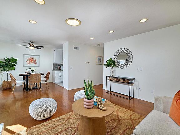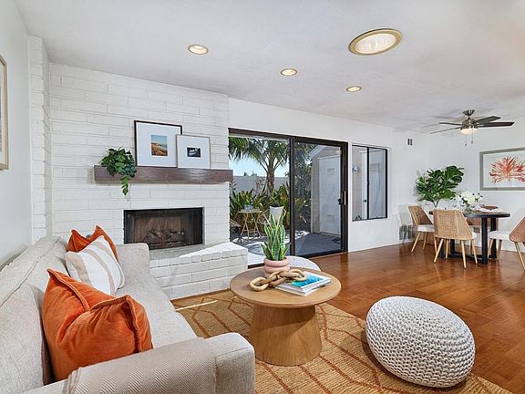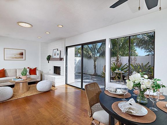 Highly desirable 2 bedroom, 2 bath single level condo in the heart of Cardiff by the Sea! This charming coastal retreat showcases gorgeous hardwood floors, a cozy fireplace, fresh paint, plantation shutters, and solar tube that fill the home with natural light. The bright kitchen features tiled counters, a mosaic backsplash, and a skylight that creates an airy, open feel. The primary suite offers a spa like bath with dual shower heads, beach rock flooring, tile surround, a designer sink, and recessed lighting. The guest bath is equally impressive with its own stylish upgrades, including detailed tile and mosaic accents. A separate laundry room with extra shelving adds everyday convenience. Step outside to your spacious private deck that’s perfect for al fresco dining, entertaining, or simply relaxing in a tranquil setting with no direct rear neighbors. The home also includes a 1 car garage and an additional parking space. Located in the well-maintained Park Place Bluffs community, residents enjoy a sparkling pool/spa, picnic area, hiking trails, and RV parking. All this just minutes from Cardiff’s beaches, dining, shopping, and top-rated schools. This home is the perfect blend of comfort, style, and the relaxed coastal lifestyle Cardiff is known for!