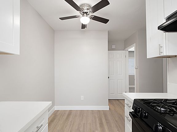 Wood-plank-style flooringQuartz countertopsNew carpet in bedroomsDesigner light fixturesCozy second floor unit