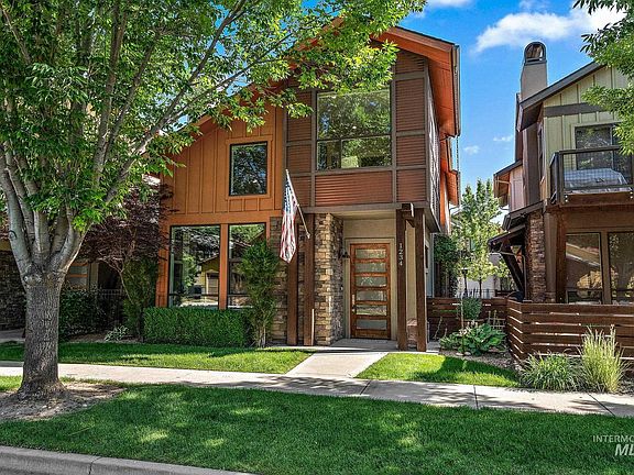 Great opportunity in the sought-after River District! This updated 3-bed, 2-bath carriage-style home with an office offers long-term value in a prime location near the Boise River and greenbelt. Residents enjoy exclusive access to the community pool, clubhouse, and private fishing pond. The open layout features soaring ceilings, large windows, and a modern kitchen with quartz countertops, subway tile backsplash, and a walk-in pantry. The great room with gas fireplace opens to a covered patio and private courtyard—perfect for indoor/outdoor living. Upstairs, the primary suite includes a tiled shower, soaking tub, dual vanities, and walk-in closet. Two additional bedrooms and a bright office/bonus room add flexibility. Recent updates include fresh interior paint, LVP flooring, and new carpet. HOA-maintained landscaping, up/down blinds throughout, and an extra-deep garage with alley access add convenience. Close to parks, shopping, and dining—ideal for a low-maintenance lifestyle or investment property.