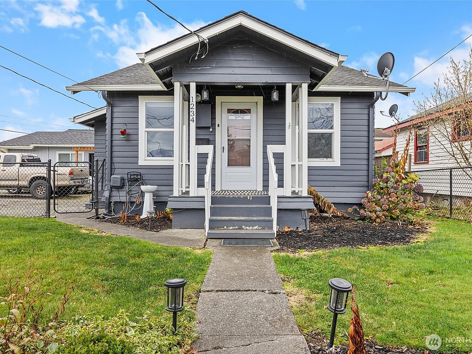 Welcome Home to this Charming Craftsman Bungalow in the Heart of Downtown Enumclaw! This beautifully updated 650 sq.ft. home offers 2 bedrooms, 1 bathroom, and a cozy living room filled with natural light. The stylish kitchen features granite countertops, stainless steel appliances, and a convenient dining area—perfect for daily living or entertaining. Step outside to a fully fenced yard with mature landscaping, creating a private and inviting outdoor space. Its prime location puts you just moments from restaurants, shops, parks, schools, and local amenities. Enjoy quick access to the Enumclaw Golf Course, Mud Mountain Dam Park, Mt. Peak hiking trails, and Crystal Mountain. Don’t miss your chance to own a charming piece of Enumclaw history!