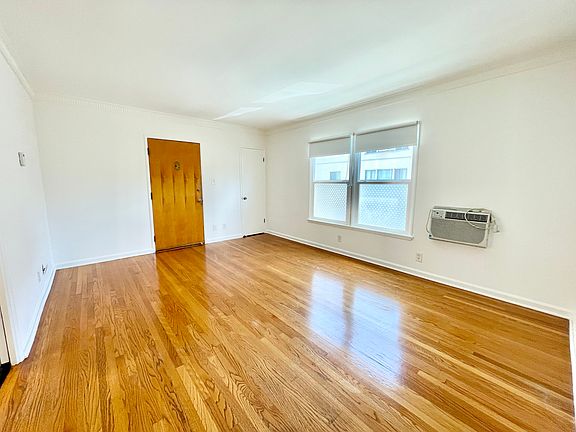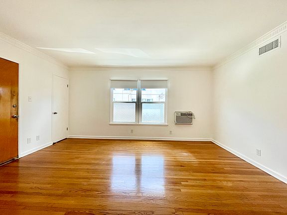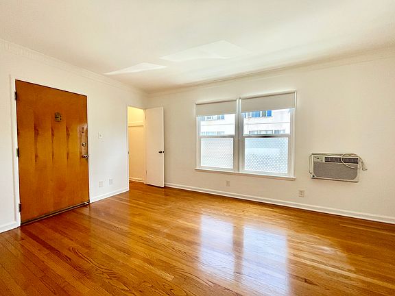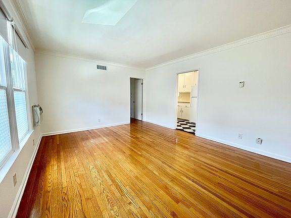 Beautiful vintage 2 bedroom 1 bath on Harper Ave! Rear unit over the garage has hardwood floors throughout the living room, hallway, and bedrooms. No tenant above or below you. Kitchen has tile countertops, a stove, refrigerator and room for a dining table and chairs. Large living room with a wall of windows, a coat closet and AC unit. Built in storage cabinets in the hallway. Bathroom has tiled bathtub/shower combo. Both bedrooms have spacious closets, and a wall AC unit.