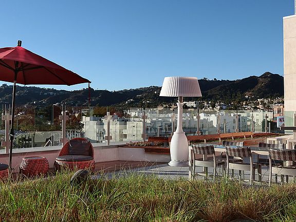 - Exterior features: Barbecue, Bicycle storage, Business Center, Conference Room, Corner/end location, Courtyard, Double-pane windows, Dry cleaning services available, EV charging stations, Floor-to-ceiling windows, High ceilings, Keyless entry, Mandatory Fee: Utilities cost based on usage plus Monthly Utility Service Fee (ConService) $3.20/month, Media Room, Night Patrol, On-Site Maintenance, On-site retail, Online Rent Payment, Open concept floor plan, Parking, Pet Park, Pet friendly, Poolside cabanas, Quartz countertops, Rooftop Deck, Smart home technology, Smart thermostats, Stainless steel appliances, TV Lounge, Top floor, View Type: Hollywood Sign view, View Type: Sunset view