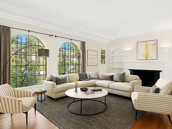 Wood-burning fireplaceShared backyardLarge furnished private patioBright kitchenVintage detailsArched doorwaysSeparate breakfast nook