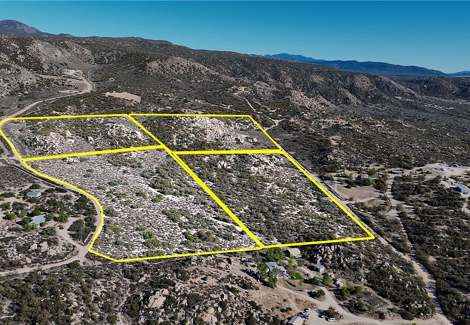 42.5 Acres- 4 Legal Parcels- Beautiful land to create, explore , enjoy and develop your own private ranch property. Located at an ideal elevation of 2800 ft. These parcels have a variety of topography and so much to offer the buyer. The lots are zone R-A-10--- Residential Agriculture ---, great zoning with lot of opportunities. Bring the animals- goats, chickens, cattle and horses. Grow your own food vegetables and fruit trees. Once you Drill your own well you have no water bill. 30 Minute drive to City of Temecula. Parcel 1 - Apn # 580-400-020- 9.38 acres- is flat and usable with native brush, does have a blue line going thru it. Parcel 2- APN# 580-400-021- 10.95 acres- Some usable land at the two front ridges and a canyon between each ridge with additional usable section at back corner. Parcel 3- APN# 580-400-022- 11.19 acres Semi gentle usable slopes on both side of a nice ridge with amazing view and just enough rocks for character. Parcel 4- APN# 580-400-023- 10.98 acre- Good amount of rock cropping's but great usable areas in between and great views. With 4 legal lots this one would be great for a family compound. **** Ask your agent or listing agent for zoning write up ****