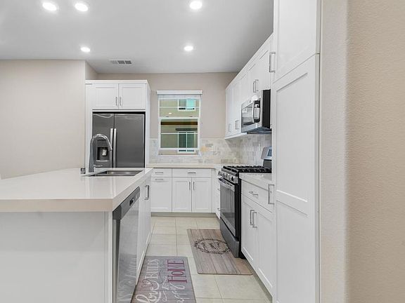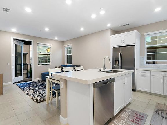 Great opportunity to own in the desirable community of Sunrise in San Marcos. This sought after plan, 3 bedrooms, 3 bathrooms townhome offers first floor foyer entry that leads you to the second level of this charming townhome featuring an open concept floor plan filled with natural sunlight, spacious living space, balcony to complement, a gourmet kitchen that includes stainless appliances, upgraded fixtures, stunning quartz countertops with subway tile backsplash, and custom cabinetry with ample storage. Additionally, the 2nd floor features a bedroom with a walk in closet and full ensuite bathroom. The third floor boasts two additional bedrooms and laundry closet with top of the line appliances. The primary bedroom includes two large walk in closets and ensuite bathroom with dual sinks and custom tiled shower. Additional bedroom includes a walk in closet and ensuite bathroom with a tub/shower combo. Other home features include PAID solar, electric car charging station, A/C, smart home features and more! This gated community includes a pool, spa, BBQ, tot lot, playground, and is ideally located with easy access to shopping, freeways, restaurants and award winning schools.