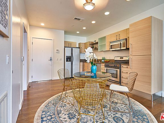 Luxury condo in Downtown LA. Open floor plan complemented by European style kitchen with cornerstone counter-tops and stainless steel appliances, rich dark hardwood floors. South facing balcony on the 5th floor with views of the pool courtyard below and peek-a-boo DTLA skyline. South facing unit is bright with natural light. This complex has first-class amenities, such as heated swimming pool, spa, dry sauna, large fitness center, yoga studio with showers, 24 hours security and Onsite management. Two parking spaces, Tandem. Close to 110, 10 & 101 freeways. Urban DTLA lifestyle! Very close by to LA Live, Staples Center, Target, and all the hip Restaurants, Bars, and Hotels in DTLA