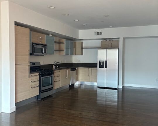 South-facing top-floor unit features an open-concept floor plan with tons of natural light, hardwood floors in the Bedroom and Living room area, a European-style kitchen with Caesarstone counters, a bedroom with dual closets, and a spacious full bathroom. The unit located at the rear of the building protects from heavy traffic noise and provides privacy. This Vero community offers 24-hour concierge/ security services, a resort-style pool and spa, a top-rated fitness center featuring a yoga studio and sauna, and a resident library and club room. Located just minutes from LA Live, Staples Center, Financial District, Koreatown, and a wide variety of dining, shopping, and entertainment venues with convenient freeway access. Central A/C, 22-car tandem parking, Washer& Dryer, Refrigerator. Please email PEAD-V before showing and follow CDC / Local Authority guidelines.