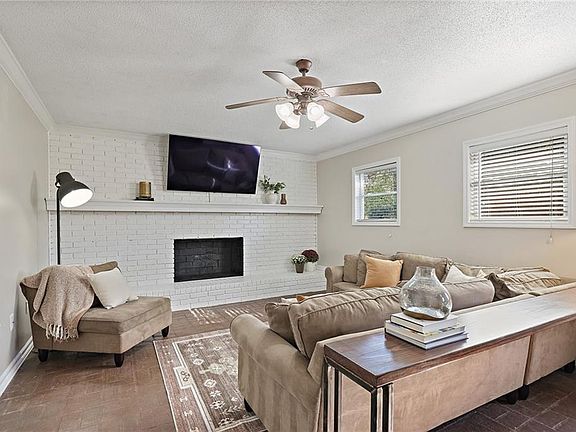 Wall-to-wall brick fireplaceWalk-out level fenced backyardSpacious islandClassic four-sided brick ranchBrand-new garage doorRenovated kitchenGenerous half-acre lot