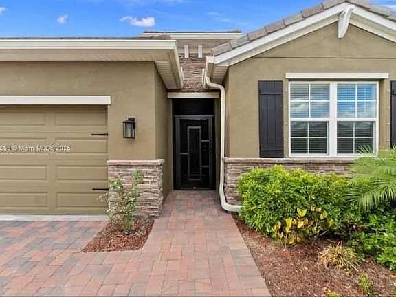 Waterfront luxury in The Estates at Tradition! This 2021 CBS smart home features 4 bedrooms, 2 bathrooms, 2-car garage, and a screened-in patio perfect for sunsets. Energy-efficient with keypad entry, garage remotes, concrete tile roof, paver driveway, and mature landscaping with irrigation. Open floor plan with volume ceilings, spacious kitchen with granite counters, breakfast bar, stainless steel appliances, and pantry. Owners’ suite with dual vanities, separate shower, and 2 walk-in closets. Gated community with clubhouse, pool, lawn maintenance & cable included. Minutes from shops, dining, I-95 & hospitals.
