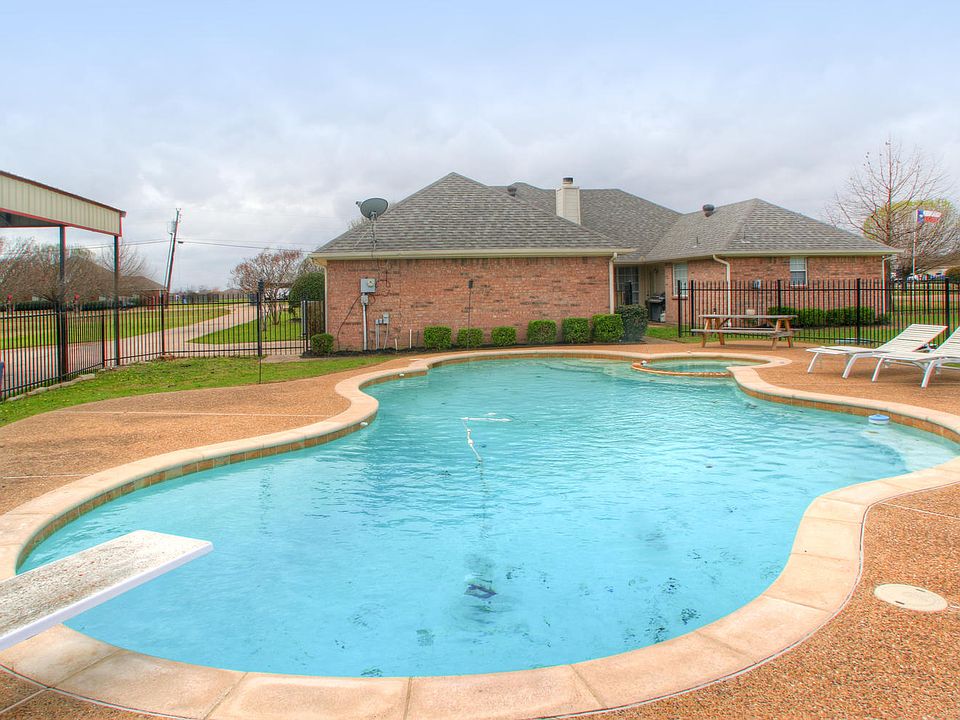 Rare opportunity to own a home in Forney ISD with Shop and Pool! No HOA either!! 4 Bedroom, 2.5 bath with Study or Formal Dining. 4th bedroom could also be a game-room which is right off of living room. Kitchen has granite counter-tops, breakfast bar, and large breakfast nook. Spacious master bath with double sinks and nice sized master closet. Diving pool with heated hot-tub. 25x35 workshop with 2 roll-up doors, overhang for extra parking, and electric. Roof replaced in 2013. New American Standard AC unit, new water heater, new septic motor, and new wrought iron fencing are just a few of the recent upgrades. Come see it for yourself!