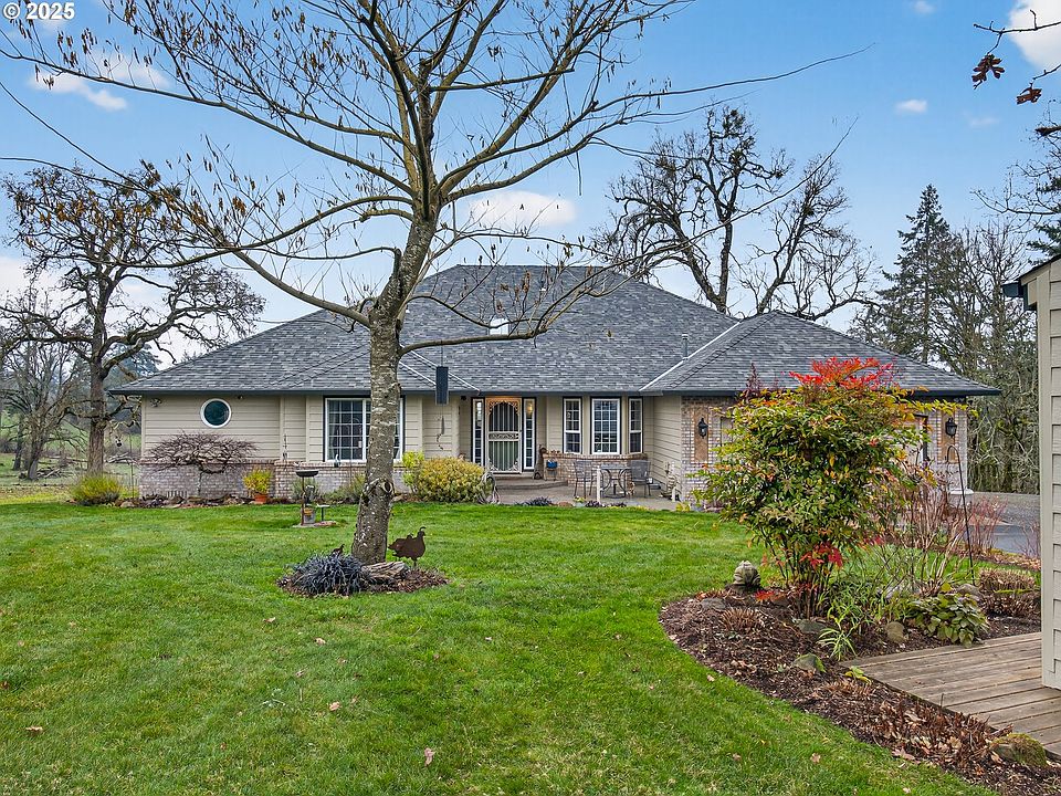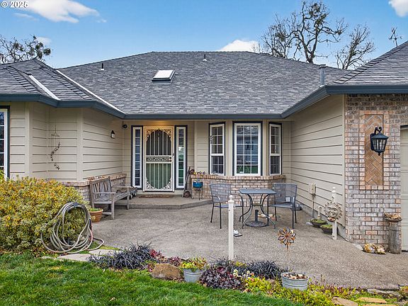 Come home to your dream property—this one truly has everything you’ve been looking for. The views, the outbuildings, the single-level living! Located on a quiet dead-end road just 5 miles to Molalla and 11 miles to Silverton. Fully fenced with an automatic gate and set among beautiful landscaping and mature oaks. Former owners used the property and outbuilding for a business, so the property features a large gravel driveway, plenty of parking, room for semi 3-pt turnarounds, and even a loading dock. The home offers 2,875 sq ft of one-level living with an amazing open floor plan great for entertaining. Two primary suites, 4 bedrooms, 3 full baths. A huge laundry room. A separate family room with barn door. 2 pantries for food and small appliances. LVT and carpet in 2020, stainless appliances in 2021, furnace and heat pump in 2022, plus tankless/propane hot water heater. The 500 gallon propane tank is owned. A quality Harmon pellet stove keeps things cozy. Enjoy the territorial views, wildlife, Mt. St. Helens, fireworks, and skydivers right from the back of the home. Covered back deck for year-round BBQs. Outbuildings include a 36X72 shop, 36X60 shop, A 24X52 barn with machine shed parking, two Conex container sheds with lean-tos, an 18X12 gazebo, chicken house, raised beds, fruit trees, and berries. Seasonal creek runs about 8 or 9 months of the year, and you might even find carnelian agates after a heavy rain. High-producing 50 gpm well with two brand-new pressure tanks. Timber deferral for lower taxes. Wired for backup generator. Home, radon, well potability, and septic inspections recently completed. Sale contingent on sellers finding suitable replacement property. Seller is a licensed Oregon Real Estate Broker.