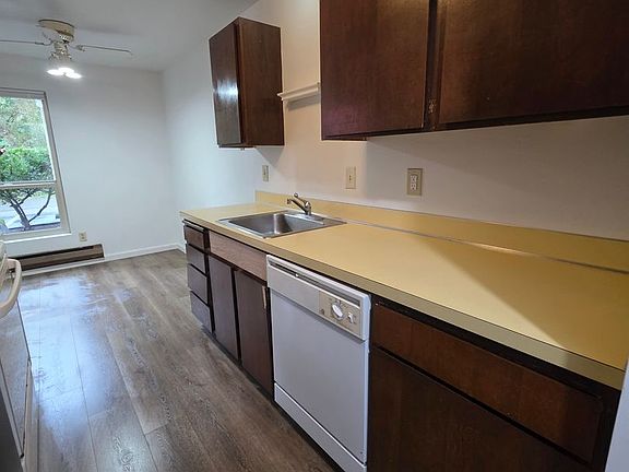 The kitchen offers plenty of cabinet storage and counter space, along with a dishwasher for added convenience. The main bedroom is roomy and includes a walk-in closet. One reserved parking stall included.