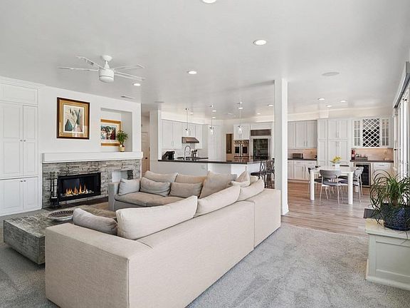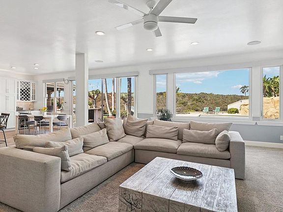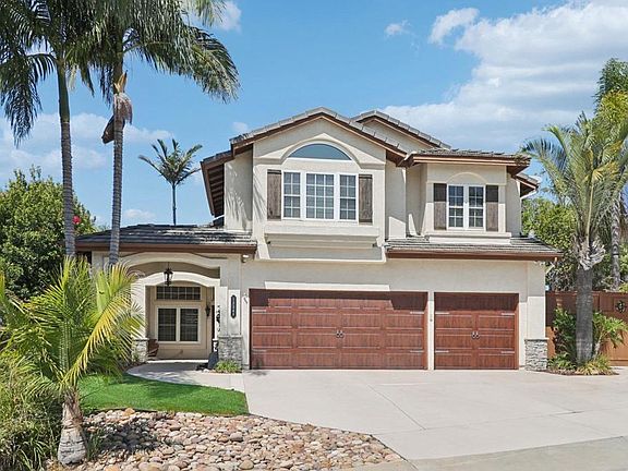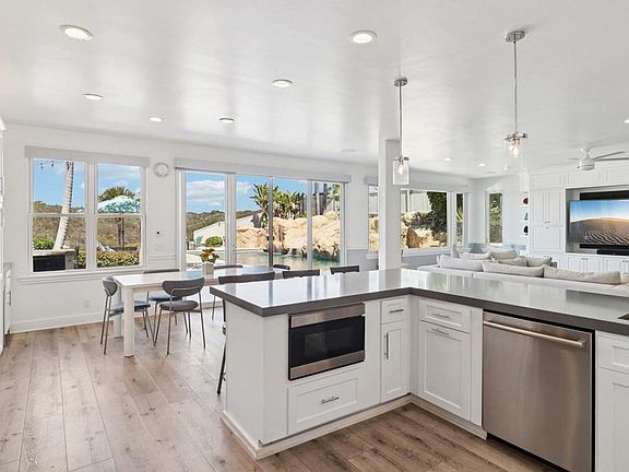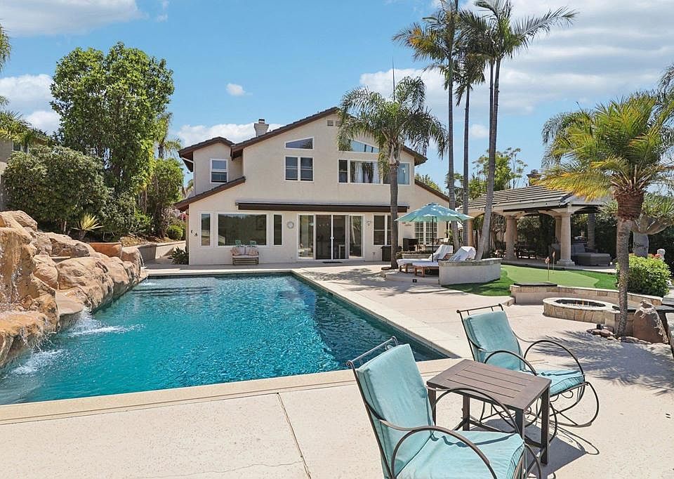 Presenting an exceptional, 3693sf property with private, sunset canyon views! A gorgeous and expansive, western-facing pool home with Owned Solar for the most discerning buyers! A chef's dream remodeled gourmet kitchen with newer, white shaker cabinets and grey quartz countertops. Top of the line stainless steel appliances include a deluxe Sub Zero refrigerator and Viking oven and range. Extra cabinets and countertops, wine rack, beverage station and wine fridge. The open kitchen flows seamlessly into the sun-bathed living room with multiple windows that bring in the light and views. An entertainer’s yard has numerous spaces to enjoy: In addition to the sparkling pool with waterfalls and a slide, there is a putting green, gas fire pit with bench seating and a lovely gazebo with TV and heaters, plus a built-in bbq with fridge and sink. The convenient ground floor bedroom has a full bath ensuite. A laundry room, half bath, 3-car garage with Tesla charger, formal dining and family room with pool table completes the downstairs. A stunning two-story vaulted ceiling entry and updated modern metal railings lead upstairs to the well-appointed primary retreat which has a versatile flex space, beautiful backyard views and walk-in closets. The luxurious primary bathroom has custom cabinetry, dual sinks, a marble vanity, double-headed shower with gorgeous tile accents and a stylish stand alone tub. The additional 3 upstairs bedrooms are each spacious and share an updated bathroom with dual sinks, marble accents and tiled shower (complete with a laundry chute :) Other notable features include a Ring camera doorbell, HVAC with an energy-efficient Ecobee thermostat, Solar Panels for both the home and pool, built-in surround sound speakers in the living room, remote controlled pool cover, sun shades, extra storage under the stairs and in the primary suite. Located in the desirable Poway Unified School District. This is luxurious California indoor/outdoor living at it's best!