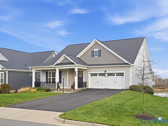 Welcome to effortless, low-maintenance living in the sought-after Readers Branch community, just minutes from Short Pump and the conveniences of premier shopping, dining, and entertainment. Thoughtfully designed and richly appointed, this Hartford Terrace model home offers an open-concept layout, tranquil water views, and refined upgrades at every turn. Step inside to an inviting foyer where hardwood floors and abundant natural light flow seamlessly through the main living spaces. The expansive main level features a formal dining room with chair rail and detailed moulding, butler’s pantry, and a serene primary suite offering both comfort and privacy. A dedicated office provides the ideal environment for working from home. The lower level includes two additional bedrooms, bathroom, a spacious bonus area, and a generous storage room, creating flexibility for guests, hobbies, or additional living space. Outdoor living shines on the oversized deck (expanded from the standard floorplan), where peaceful water views and a double-sided fireplace create the perfect setting for morning coffee or evening relaxation. Additional features such as a whole-house generator, zero-entry garage (no steps to enter into home), and fenced rear yard enhance both comfort and convenience. Situated in a vibrant community offering pickleball courts, a welcoming clubhouse, a pavillion with fireplace and swings, and scenic walking trails, this home promises a lifestyle of connection, ease, and understated luxury, in a setting that feels like a retreat every day. HOA includes lawn care, landscaping, trash and recycling. Schedule your showing today.