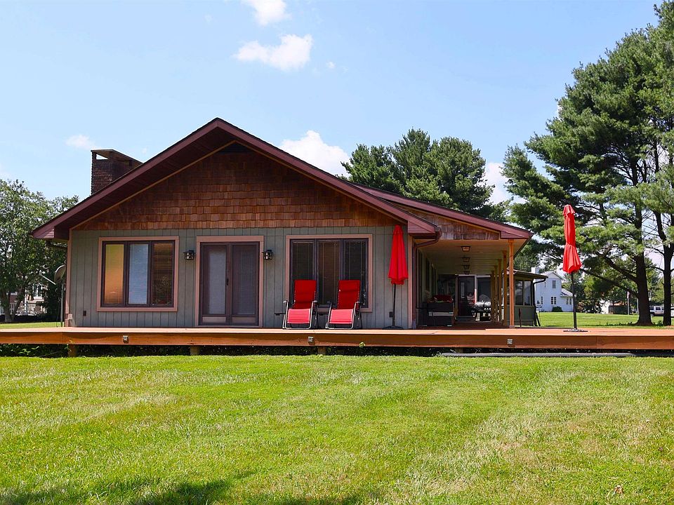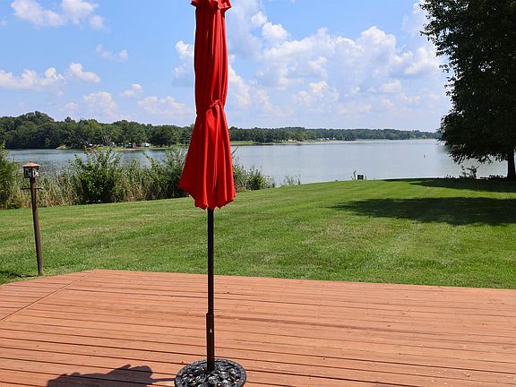 ONE-LEVEL HOME ON WEST BOGGS LAKE. Well-maintained 3 bedroom, 1-1/2 bath home situated on a level point on the main part of the lake. The large lot is .45 acre w/views of the park, main lake and one of the best spots for the July 3 fireworks show. Open floor plan and Pella windows offer many views of the lake, kitchen with stainless steel appliances, large gas fireplace, dining and living areas. Newer HVAC and water heater as well as new engineered hardwood flooring in main areas. Home not only has lake views and frontage it has a dock for fishing and boating. The main bath was recently remodeled with a walk-in shower, full tub, and modern vanity. A separate laundry room also has storage. Closets are large and the main bedroom offers a half bath for convenience. The deck wraps around two sides and is covered on the back side of the house. Off the garage facing the lake is a screened-in room with fans. The covered breezeway features stamped concrete and connects to the two-car garage which has loads of storage. Home is at the end of the Cul-de-sac and centrally located near Crane base between Bloomington and Evansville. Live in your vacation home and enjoy lake life in your own special spot. Possession at closing.