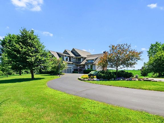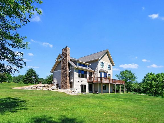 Delaney custom built home on almost 8 acres of rolling land! 5 br, 4 ba with in -floor heat, sun room, cherry cabinetry & millwork. Birch hardwood floors, SS appliances, Silestone, vaults, 3 fireplaces, private master suite & large deck off the back of the home. Lower level being finished currently w/in floor heat, large family room & walkout. Beautifully landscaped yard & garage is heated 2 1/2 car w/ plenty of storage. Attention to detail!