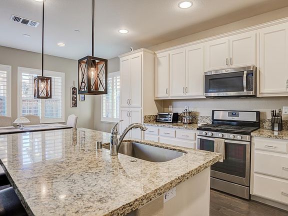 This stunning home, located in the desirable Dixon's Parklane subdivision, truly checks all the boxes! The exceptional floor plan features three bedrooms, an office on the main floor that could serve as a fourth bedroom, three full bathrooms, and a versatile loft space. The kitchen is a highlight, boasting a spacious island, stainless steel appliances, and upgraded cabinetry. The expansive great room and large dining area provide ample space for entertaining. The luxurious owner's suite is designed for relaxation, complete with a walk-in shower and a soaking tub. Convenience is further enhanced by an upstairs laundry area that offers substantial additional storage. Throughout the home, you'll find plantation shutters, some of which are remotely operated. The front and back yards feature drought-tolerant landscaping, combining beauty with sustainability.
