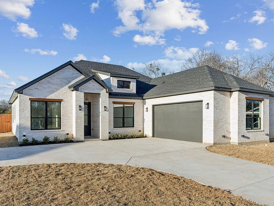 Situated on nearly half an acre, this modern new construction offers a rare blend of space, functionality, and contemporary design. The home features 4 bedrooms, including a flexible room ideal for a home office, plus 2.5 bathrooms and a 2-car garage. The open-concept living area is anchored by an electric fireplace, creating a warm focal point that flows into a well-appointed kitchen showcasing waterfall quartz countertops on an expansive island, a built-in microwave drawer, and sleek finishes designed for both everyday living and entertaining. The primary suite provides a private retreat complete with its own electric fireplace, a freestanding soaking tub, separate walk-in shower, and a thoughtfully designed layout. Secondary bedrooms are comfortably sized and offer versatility for guests, work-from-home needs, or additional living space. The oversized lot allows room for outdoor entertaining, future enhancements, or simply enjoying the freedom that comes with extra land—an increasingly hard-to-find feature. A well-balanced design that pairs modern interiors with generous outdoor space, offering comfort, flexibility, and long-term value. Additionally, the builder is offering an added peace of mind with a 1-2-10 warranty.