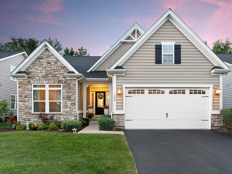 Welcome to your new home! This remarkable 3 bedroom, 3 bath residence in Stonegate West exudes a sense of pride in ownership, design detail and built in 2017! Nestled on a premium lot, it offers breathtaking nature views. The main floor boasts a first floor master bedroom suite, guest bedroom and home office. The family room and kitchen are adorned with vaulted ceilings, flooding the space with natural light and showcasing upgraded Armstrong luxury vinyl plank flooring. The gourmet kitchen features a spacious center island, elegant white cabinets, and stainless steel appliances. The master suite on the first floor presents serene backyard views, an upgraded bathroom, and a convenient walk-in closet. Upstairs, a guest suite and full bath await your visitors. The finished basement is a true gem, offering a large rec room, additional office space, and ample storage. To top it all off, Stonegate West provides a maintenance-free lifestyle, including lawn care and snow removal services mulching and driveway sealing. As a resident, you'll have access to the clubhouse, pool, and exercise room, walking trails & many activities ensuring you have everything you need for comfortable and enjoyable living.