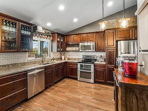 Lots of upgrades in this warm and inviting 3bed/2bath single level home in Harvest Creek. Recently remodeled kitchen features quartz countertops, custom backsplash, high end appliances, soft close drawers and cabinets with expanded layout. Entire home features acacia wood plank flooring. The spacious primary bedroom is tucked away and includes a walk-in closet with custom shelving and en-suite bathroom with expanded shower and double sinks. There are 2 additional bedrooms with a shared bathroom. Situated on a corner lot, the fenced backyard has mature landscaping and U/G sprinklers. Backyard has large play set for children and is completely fenced in to keep pets safe. Home comes equipped with A/C for hot summer nights. Upgraded lighting, vaulted ceilings.. A laundry room is directly off the two-car garage, which boasts floor to ceiling shelving, a built-in workbench and hanging storage. Ideally located on the Northwest side of town with access to everything Bozeman has to offer including excellent schools, shopping, parks, trails and minutes to Downtown. Certain pets are welcome with monthly pet fee. Renter is responsible for utilities, garbage and internet. Renter is required to follow HOA outlines.